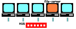 Windows98のような普通のコンピュータが複数あってこれがケーブルに繋がる(LAN)だけで、単独でコンピュータを使用していたときに比べ,格段に便利になります。自分の目の前にあるコンピュータとは違うコンピュータも使えるようになるからです。