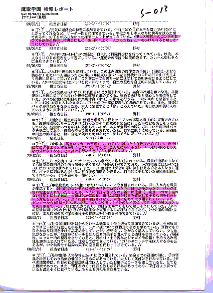 検索D参照 95年7月22日担当者日誌 S―010