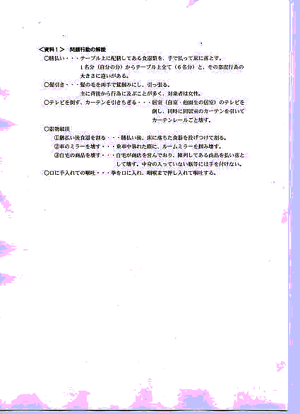 入所当時は施設適応力が弱く、すでに粗暴行為(膳払い、女性への髪引き、テレビ等