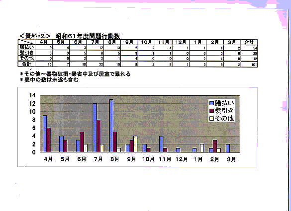 ○昭和61年度(担当 高松)・・・問題行動の頻度は<資料・2>を参照