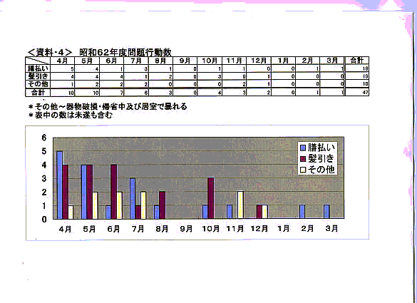 ○昭和62年度(担当 高松)・・・問題行動の頻度は<資料・4>を参照