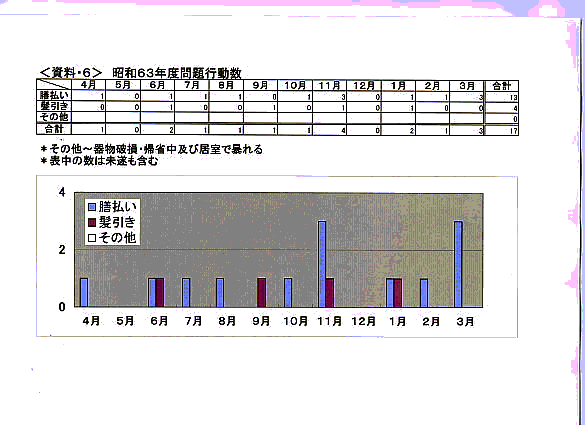 ○昭和63年度(担当 数山)・・・問題行動の頻度は<資料・6>を参照