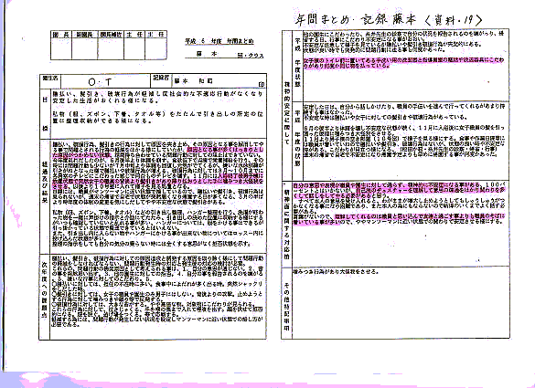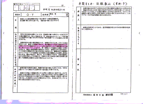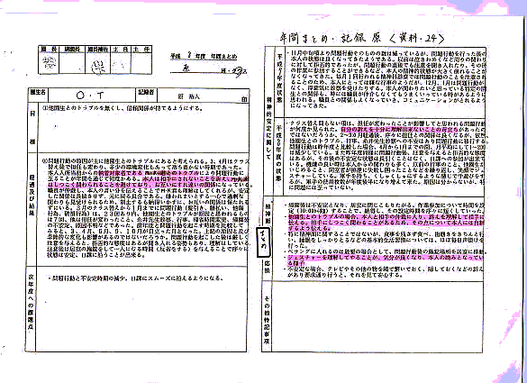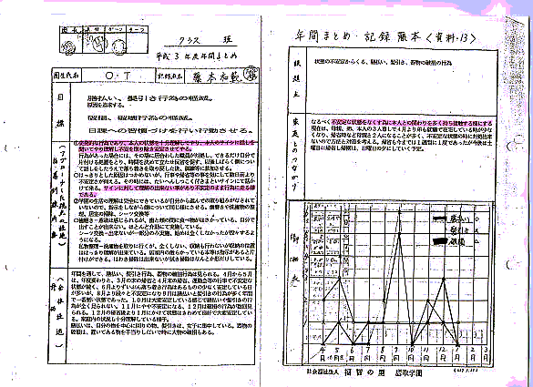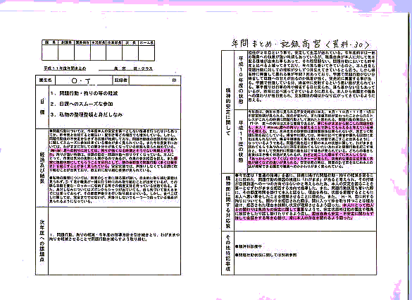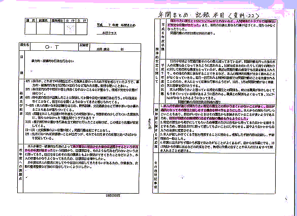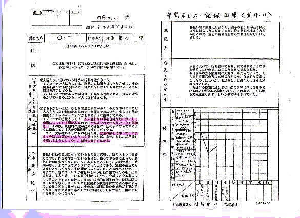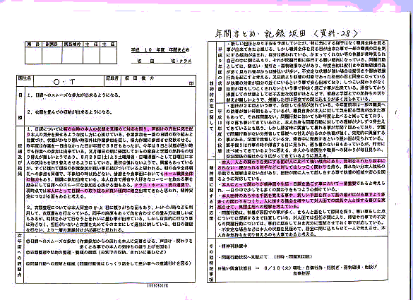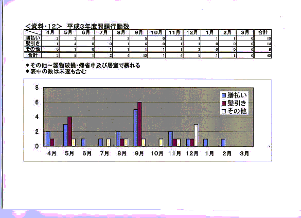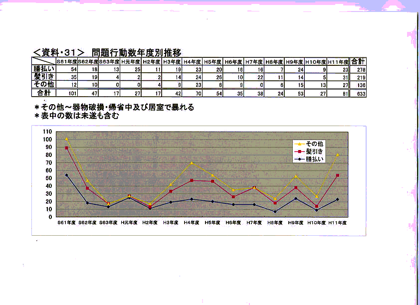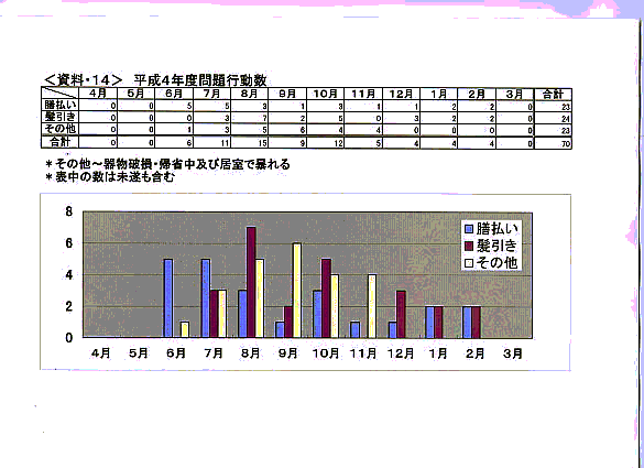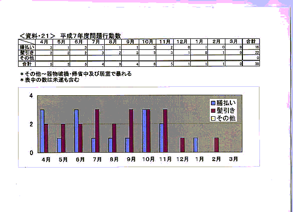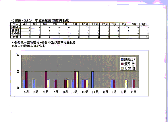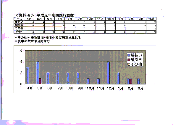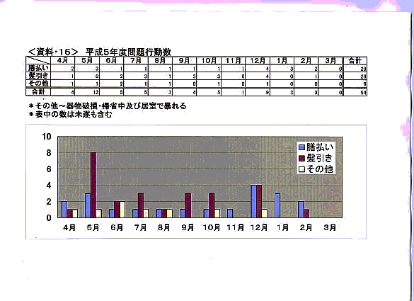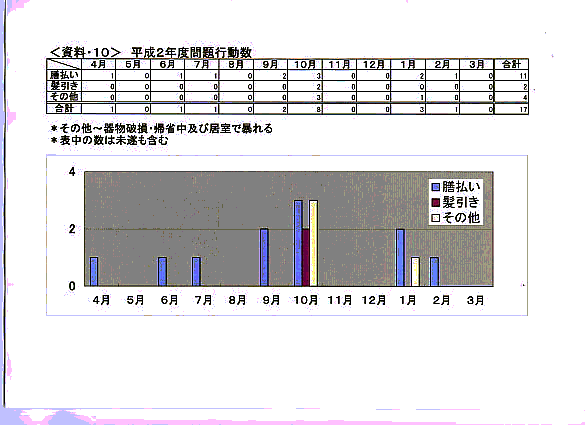 ○平成元年度(担当 数山)・・・問題行動の頻度は<資料・8>を参照