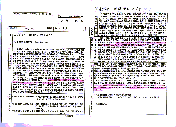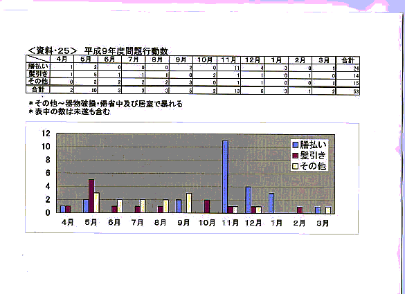 ○平成9年度(担当 坂田)・・・問題行動の頻度は<資料・25>を参照