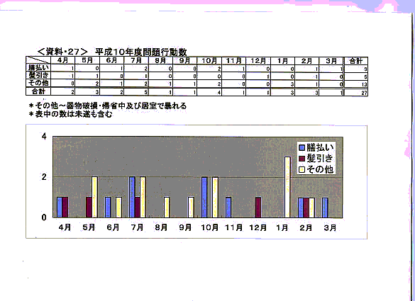 ○平成10年度(担当 坂田)・・・問題行動の頻度は<資料・27>を参照