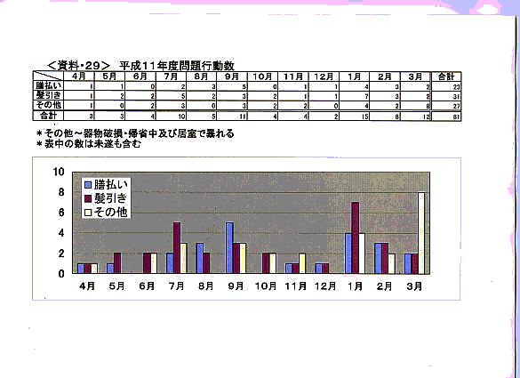 ○平成11年度(担当 高宮)・・・問題行動の頻度は<資料・29>を参照