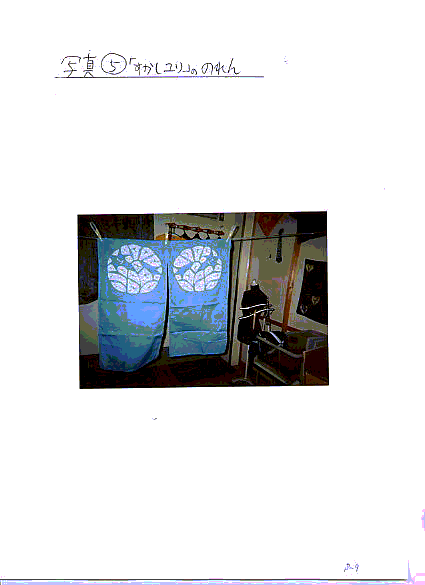 全体的に取り組みはよい。本年度は絞りに加えパッチワークや刺繍をおこなうことで作業に変化が出て意欲的に取り組めている。特に刺繍は家庭でも趣味としておこなっており(写真C)意欲的である。図案も一つ描いて渡すと同じ絵を真似して描き刺繍している。どんな図案でも細かくきれいに仕上げている。