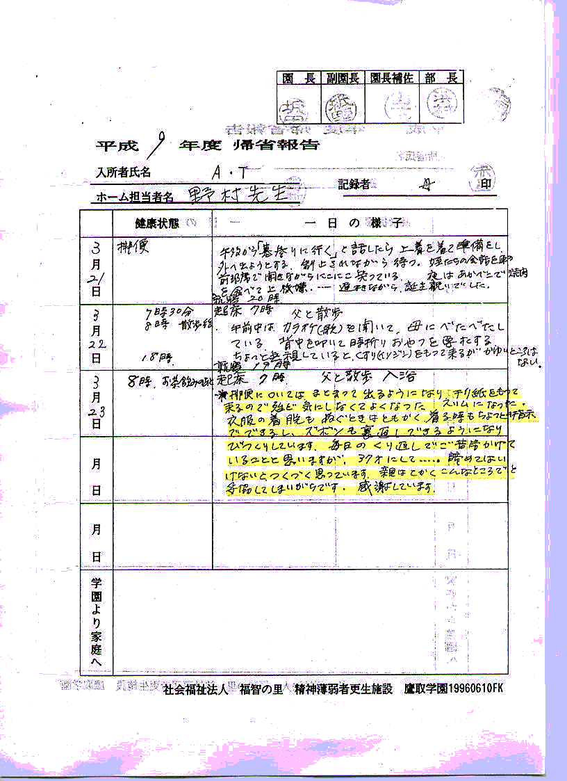が事を作り上げているといった状態であったA・Tさん。処遇に当たった職員は親でも