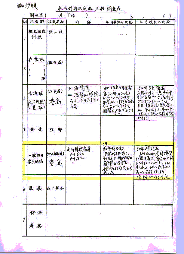 担当になってからの5年間、身辺面においても本人のできる内容から取り組ませ技術